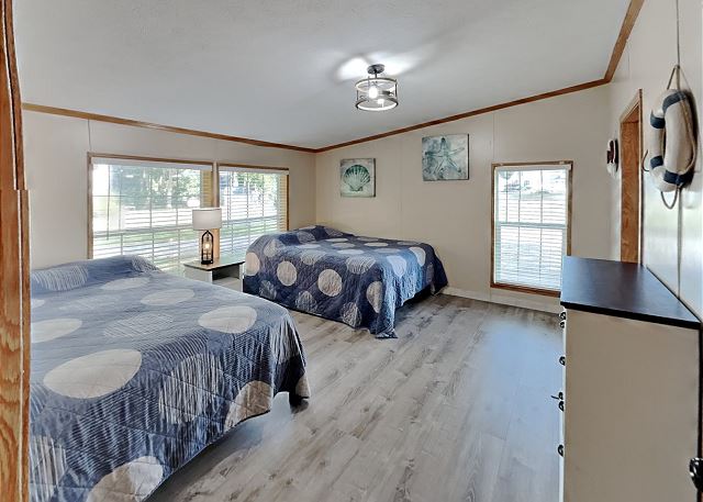 The Island Club at PIB is the premier lodging choice. The amenities and space that one gains by choosing a home versus a hotel are numerous. Remember to book your dates early as many popular weekends sell out fast. The bedding in this house is as follows: 2 Queen (1st BR), Full/Full Bunk (2nd BR), Full (3rd BR), Full& Twin (4th BR).