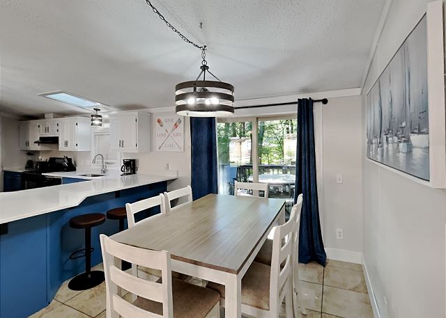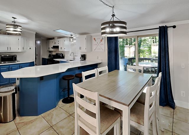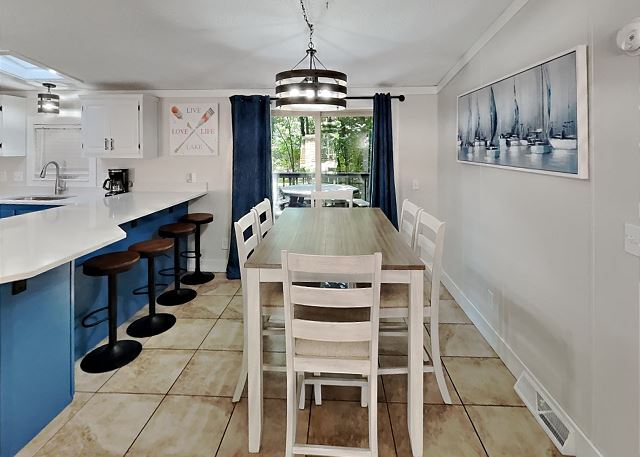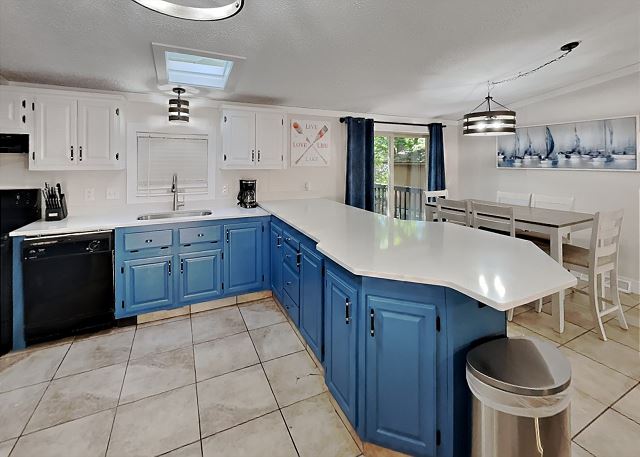 "After Labor Day, during the week, it is very peaceful and quiet here. With a golf cart, you can be everywhere within minutes. This unit, as with others there we have rented, does not have wine glasses, bathroom soap, and the tv does not pull in local channels - minor but annoying. That said, this was the nicest unit we have stayed in at Island Rentals over the years. Some units there aren't as nice as others."