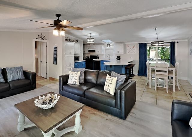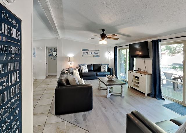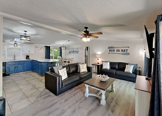 "Great living space. Kitchen was very spacious and the living area was very roomy and comfortable Great deck both front and back. Back deck was private with ample seating.