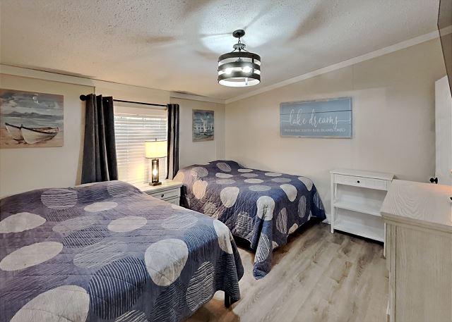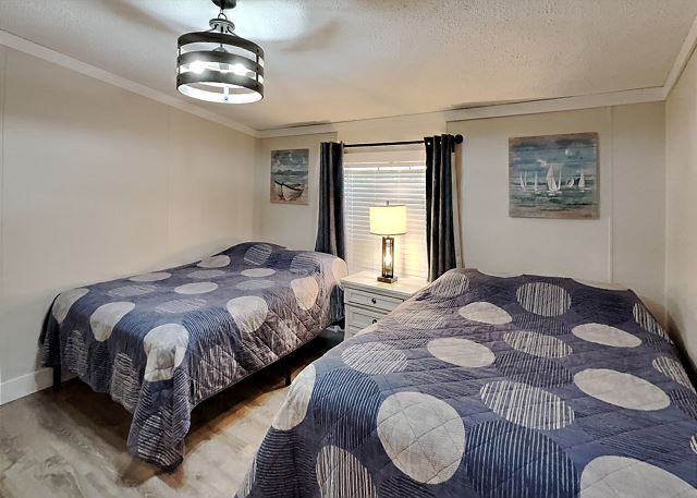 The bedding set-up in this vacation rental home is as follows: 2 QUEEN (Master Bedroom), FULL & TWIN (2nd Bedroom), FULL & TWIN (3rd Bedroom).