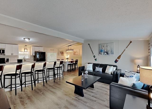 "We had a great stay this past weekend at the Island Club. The rooms were clean and the cabin was very spacious. The only concern we had was with the electrical outlets, with the majority of them being loose in the wall and unable to have phone chargers plugged into them. Additionally, some lamps flickered when plugged in (we assumed due to the same reason with the outlet). Other than that, the house was in good shape! We made sure to bring our own blankets and towels, as requested from management. You will not find a hand towel or pot holder either, so you may want to bring those for the kitchen and bathroom if you'll be using them often. Overall, great stay on the island! "