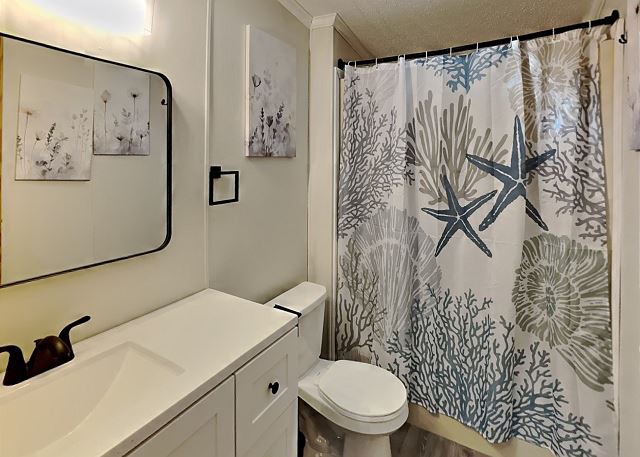 "It was better than expected, size-wise and fit us (Grandma, Grandpa and two little families) very nicely. We HIGHLY recommend getting a golf cart - the best way to get around! The management was so professional, friendly and responsive; it's in a beautiful setting and the pool was so close! We look forward to coming back next year!"