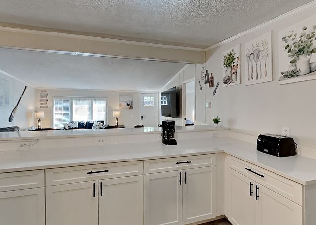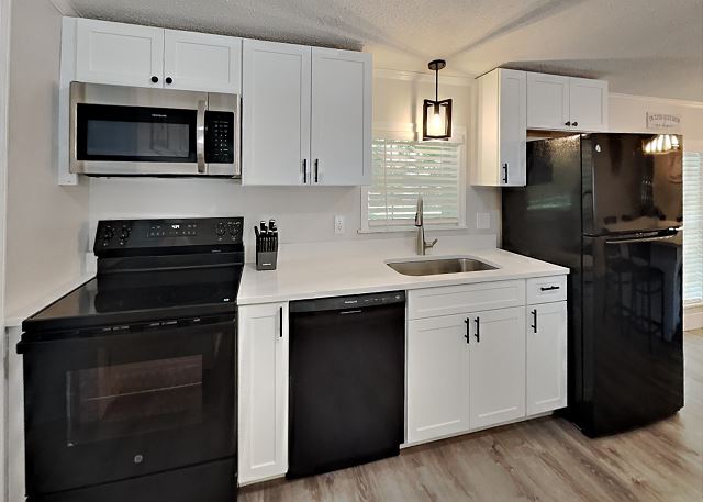"Our group of 6 arrived on a Saturday afternoon and left Monday morning. We ended up with a bigger place than we had booked which was a nice benefit. I would advise reserving a golf cart before you arrive. We brought our car which we ended up using because there weren’t any onsite carts available. We didn’t use the pool or grill but I liked that they were there. Overall the place was clean and had what we needed. There were cups, pots/pans, microwave, coffee maker, and utensils including a wine bottle opener if you need it. "