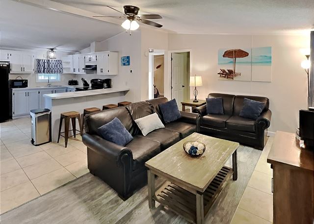 "#97 was very clean and tidy with wonderful decorative touches. Two full bathrooms allow for a family or group to stay in comfort. The back porch and table were nice to sit out and enjoy the May weather. Thank you to Island Club for a great stay! Order the golf cart, they'll bring it right to your house! "