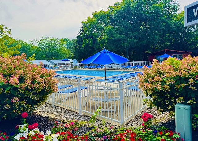 "The property has a lovely deck on the back, which is private and scenic. This was a family stay, with a five year child, so the quiet during the week was appreciated. The kitchen has a good supply of dishes and a coffee maker. The pool is very small and crowded. There was a large soaking tub, which the child wanted to bathe in, but couldn't because none of the bathtubs had drain stoppers. Overall, it was an adequate summer cottage experience."
