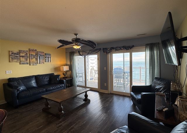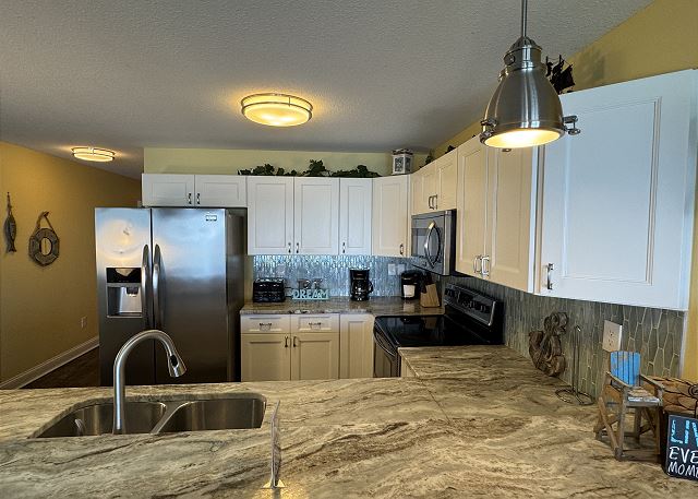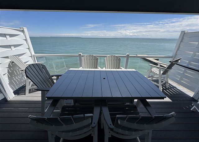 "The condo was very clean and spacious. Loved the nautical decor. We really enjoyed the three decks. Loved being right on the water. My son had a lot of fun fishing off the pier and exploring the shoreline. We had a few questions and when we called the # provided, they were very responsive. Great place to stay!"