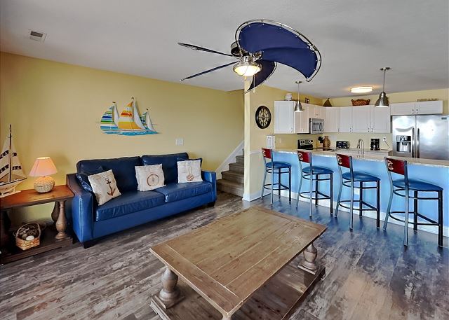 "Very comfortable with 9 people in one condo. Waterfront has great views, and have towels and linens provided. Need a golf cart but plenty of parking and a quick jaunt to anywhere on the island. Not sure how "rowdy" the pool area gets in summer, noone was there when we were there. Booking was a little obnoxious having to sign contracts and sifting through a bunch of emails, like your actually renting a place instead of just booking a hotel, then an app to download. Only thing you need to checkin is the door code. Process could be WAYYYY more streamlined, but once you're their everything is smooth and nice."