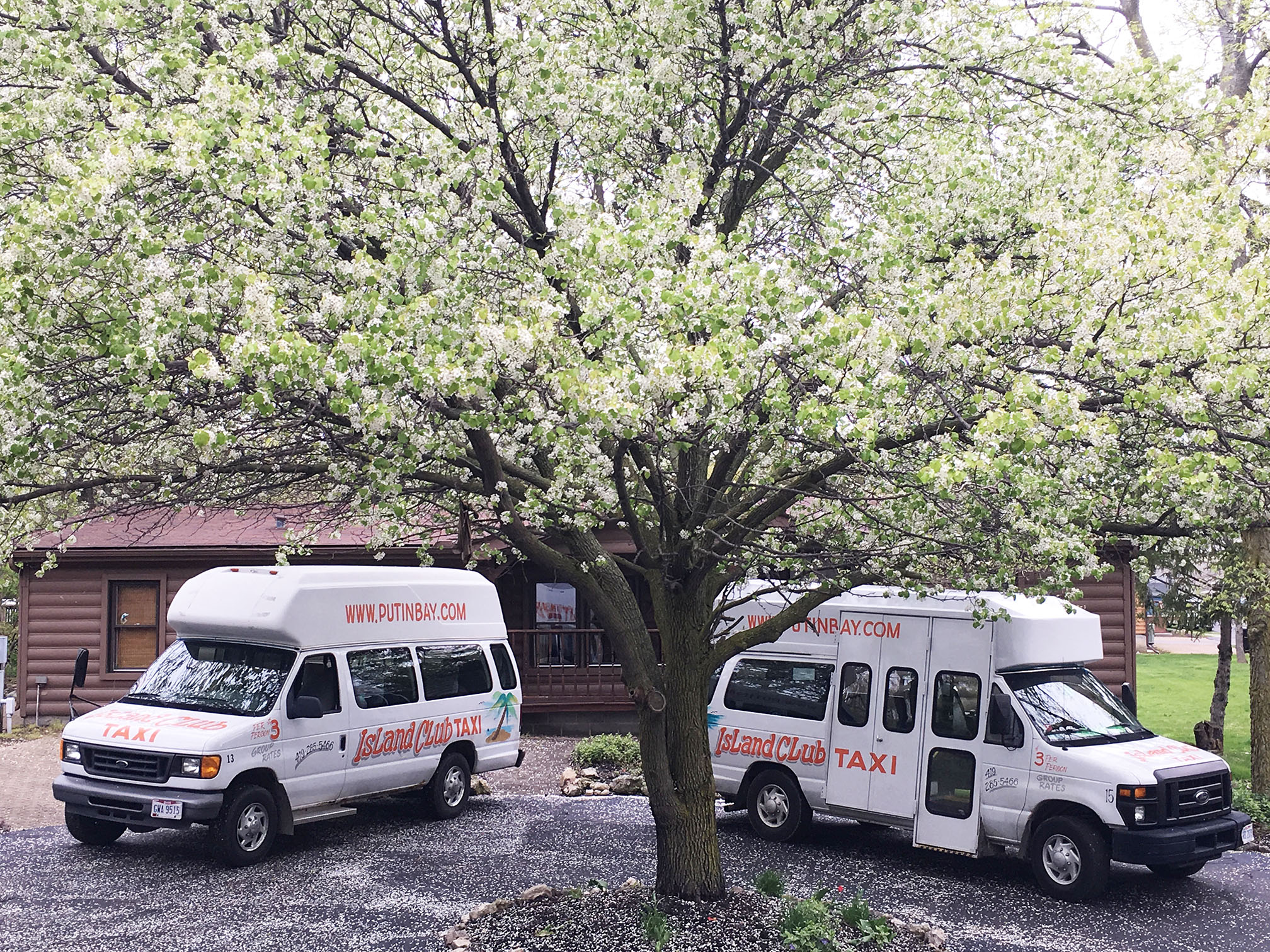 Island Club Taxis: Available seven days a week, year-round, Island Club Taxis can assist you with all your transportation needs on Put In Bay. Serving passengers 24 hours on Fridays and Saturdays between Memorial Day and Labor Day, Island Club Taxis utilizes multiple 15-passenger vans with uniformed drivers. Island Club Taxis specializes in weddings, conventions, groups, school groups, business meetings, family reunions, and tours. Ask about discounted rates for groups! To make arrangements or ask questions about our services, contact us via email thru our contact form or call 419-285-5466.